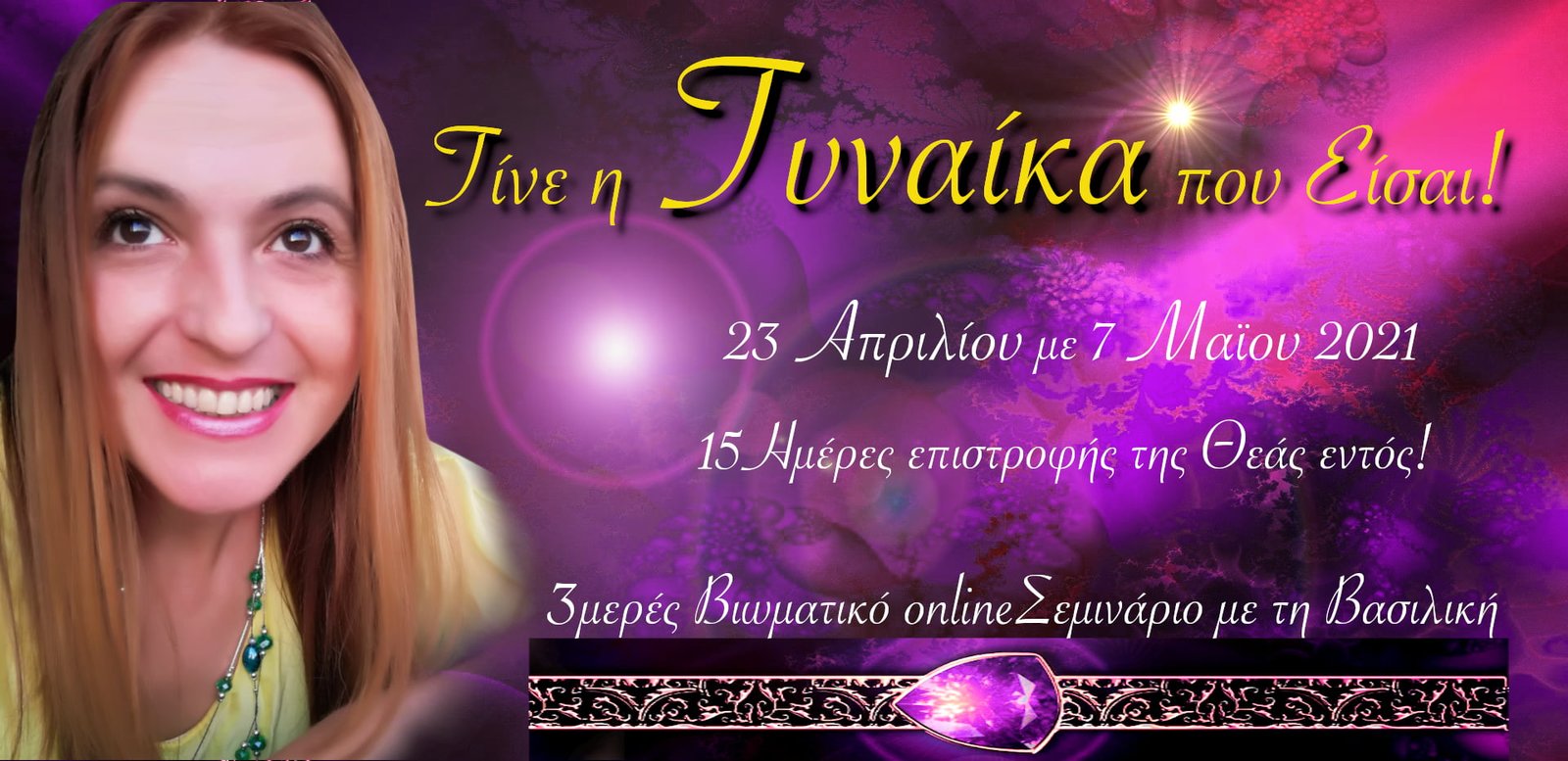 Nährst du? Bist du inspirierend? Oder befindest du dich an einem Halt? Bist du in deinem weiblichen Geschlecht gut ausbalanciert oder hast du dich verändert? Erkennst du Frieden in dir selbst oder kämpfst du immer noch „wie ein Mann“, um etabliert zu werden? Die Große Muttergöttin, die Priesterin, die weibliche Quelle der Empfängnis, der Schöpfung und der Geburt, die während der Jahrhunderte des Patriarchats, vernachlässigt, unterdrückt und vergewaltigt wurde, aber auch die Entfremdung der Frau selbst von den heiligen Qualitäten ihres Geschlechts brachte, ist notwendig, dynamisch zurückzukehren, nicht nur, damit die Frau selbst ihr enormes Potenzial erfährt und eine neue Quelle der Inspiration ist, sondern auch, um das Gleichgewicht und die Harmonie in der Welt wiederherzustellen. In diesem 3-tägigen Seminar findest du Schritt für Schritt wieder die Göttin in dir. Du wirst die Reinigung von Eindrücken erleben, die im Laufe derJahrhunderte in deinem Erbgut aufzeichnet wurden, indem du das loslässt, was dich daran hindert, Gnade, Schönheit, Intuition, Fülle und Beschützer des Lebens und der Zukunft zu sein…